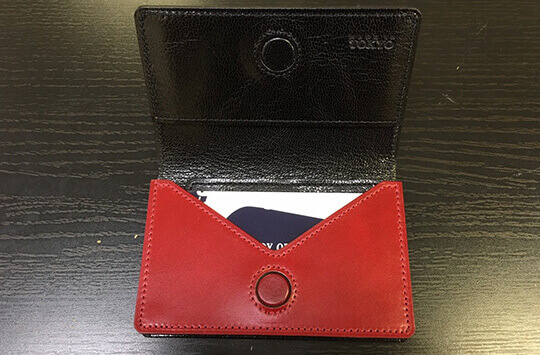 機能美を追求し、使っていて美しい名刺入れというところです。名刺を出す所作や頂いた名刺を上に置いておくのにもマグネット仕様なので蓋が浮かず綺麗において置けるなど細部に至るまで丁寧に仕上がっています。また、最高級素材であるコードバンを使用することでビジネスマンとしての誇りと自信を持ちながらお仕事していただけるような名刺入れです。