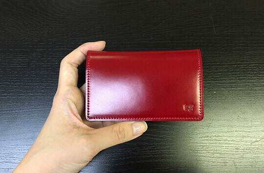 通常の名刺入れのサイズと同じ程度になります。通しマチにすることによって容量大きく最大50枚の収納が可能です。