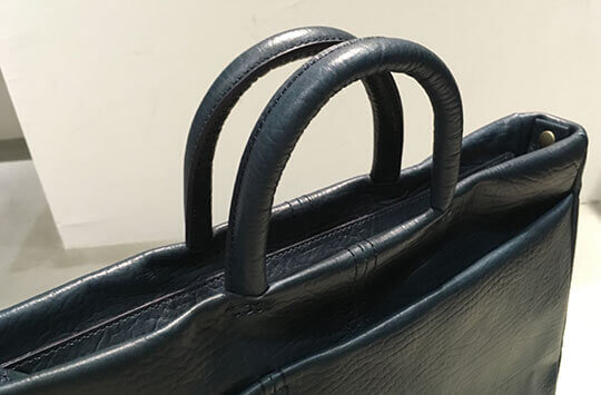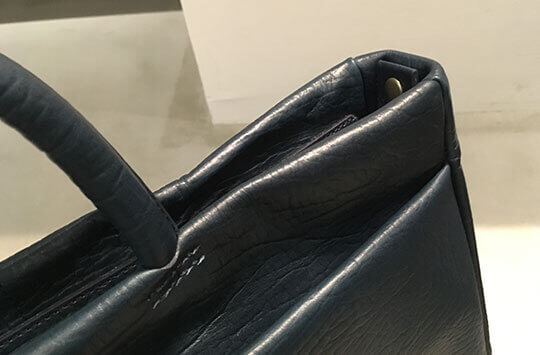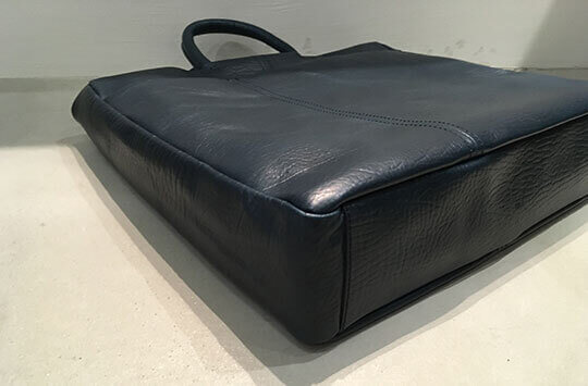 「テネラ」という名の通り、全体的に柔らかい印象ですが、単に鞄の角を丸くするなどというだけの方法では無く、金具を見えないようにしたり、切断面を折り込むなど、細かい技法により自然と柔らかい雰囲気になっているのは、エムピウらしいです。たっぷりとオイルを含んだレザーはその素材だけでも魅力があり、型押しの模様ともマッチして、ぐっとおしゃれなブリーフケースに仕上がっています。