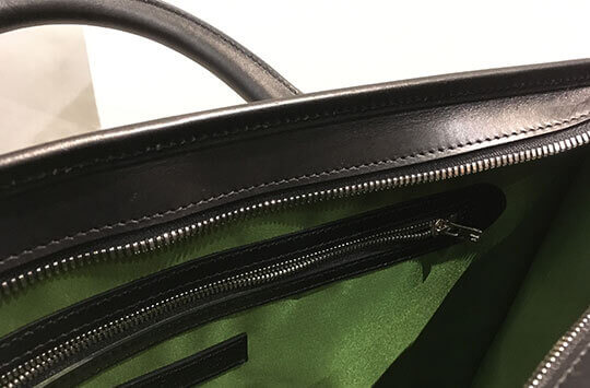 4つ目に修理をすることまで念頭に入れたつくりです。ダメージのきやすいハンドルの部分や、鞄の角など。将来その部分を修理することまで配慮されたつくりをしているので、長く使い続けられます。