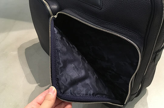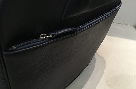 特に驚くのが前面にある二つのポケットで、見た目では想像できない程の収納力があります。書類などでメインルームが埋まる方も安心して使えます。