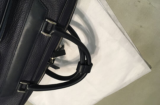 パッケージは不織布に包んでおります。柔らかい不織布で鞄を優しく包みます。