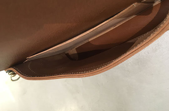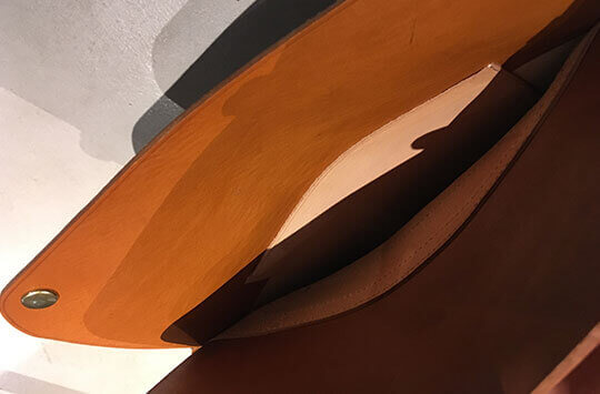 マチ幅が比較的広い手前のメインルームには、本や手帳、財布などのある程度厚みのあるものを収納することができます。一番取り出しやすいスペースになっています。