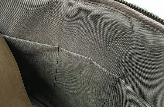 内側に3つに分かれたオープンポケットが付いています。細かい物を入れれば整頓して荷物を収納できます。
