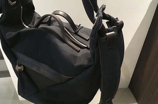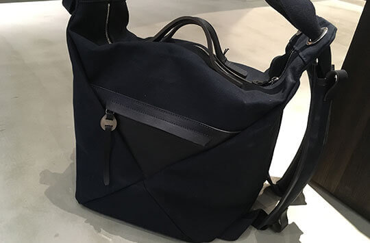 底面から見ると正方形になっている面白いデザインのショルダーバッグ。ストラップが稼働式になっており、商品名通りストラップをシフトすることで、肩掛けにも手持ちにもリュックにもなります。素材は帆布素材とレザーを組み合わせており、しっかりと硬めの素材がフォルムをキープしてくれています。