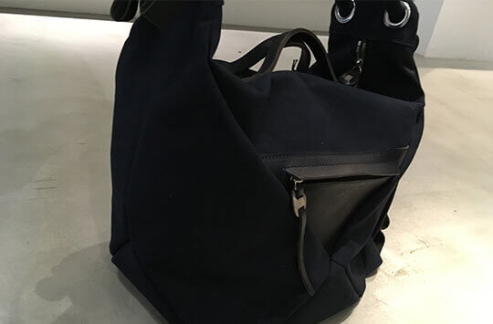 何より群を抜く個性的なデザインが得意なジンモン。ちょっとした工夫で今までに無かった新鮮な発想をカタチにされています。ストラップをシフトすることで全体が様々なフォルムに変化するので、その日の気分や服装に応じて、複数の鞄を持っているかのように使えます。街でも同じ鞄を持っている人に会わないオリジナリティが嬉しいです。