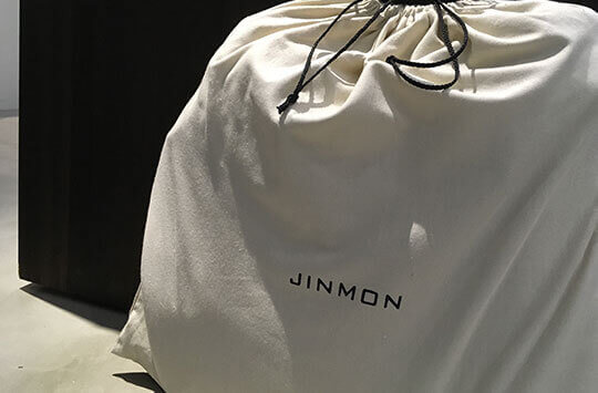 パッケージはジンモン特製の布袋になっております。柔らかい布地にジンモンのロゴが入っており、鞄を優しく包みます。