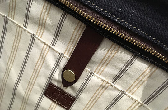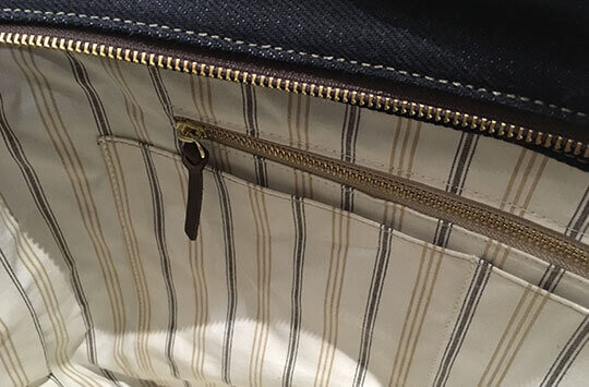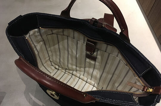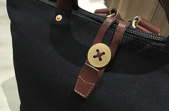 デニム×チョコレートブラウンは濃い目のデニム生地の色合いがおしゃれです。使っていくとデニムもレザーもエイジングしていくのが楽しめます。