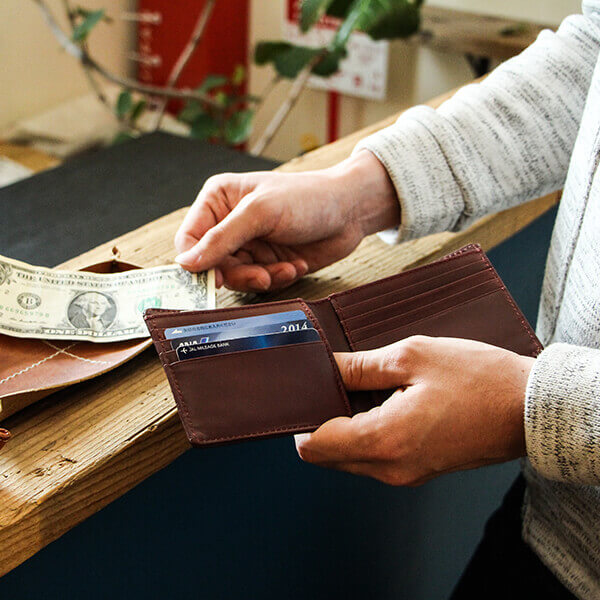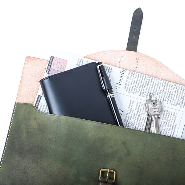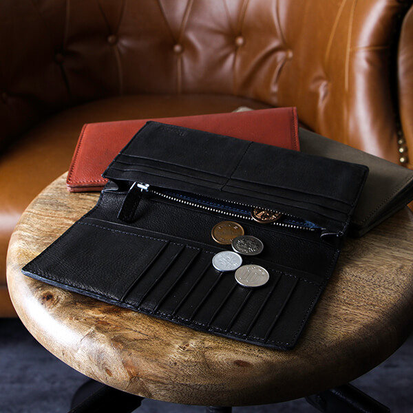イタリアの中でも有数のバダラッシカルロ社のフルベジタブルタンニンレザー。経年変化の美しさ、手にした時の質感、見た目の雰囲気の良さ。