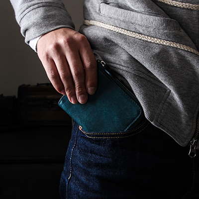 イタリアの老舗タンナーであるバダラッシ・カルロ社のブランドレザーであるプエブロ。植物タンニン鞣しで作られた革の銀面を毛羽立たせて、使っていくうちに経年変化しやすいようにしています。触り心地は最初和紙のような手触りで、使い込んでいくと艶が出てきてコーティングされます。非常に変化を楽しめて、変化の後の表情も美しい革です。