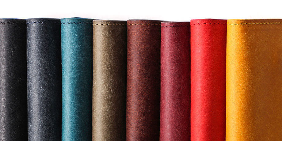 時間のかかる自然製法のタンニン鞣しで染料染めをした、cambiamento leather(変化する革の意)