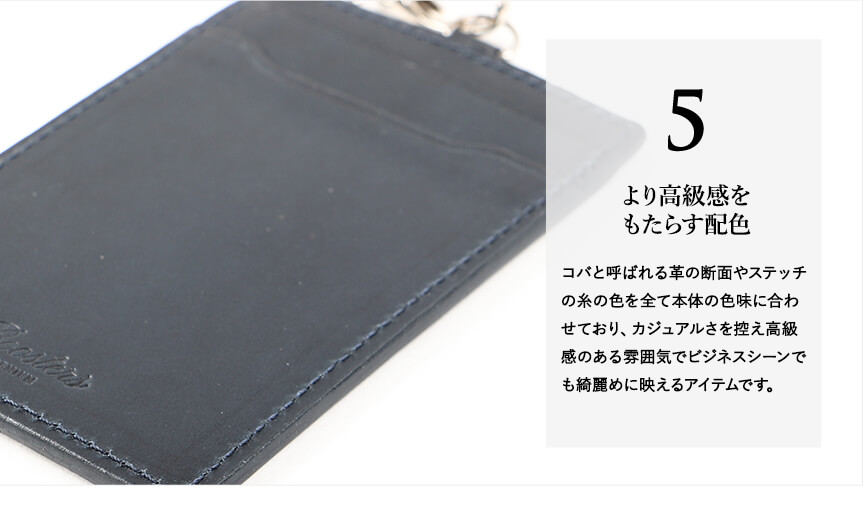 思っていた通りの商品でした。丁寧な梱包で送付され開封した途端に革の良い香りがして上質さを感じました。色はオルテンシアを選びました。普段の会社でお洒落度合いを上げれるようにと。とても落ち着いた良い色あいで派手すぎずでも主張する色が」とても気に入りました。本来カード類を首から下げるのは子供のようで大の大人が,,、と思っていましたがこのようなお洒落な仕上がりならば,一つのアイテムとしてアクセサリー感覚で利用でき,プラスチックやビニール製のものとは比較になりません。大阪の大きなビルに引っ越したのがきっかけでしたが買ってyいおかったです。