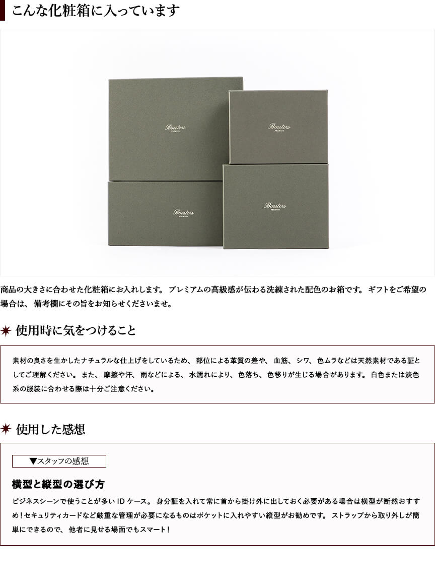 今まで横型のIDケースを利用していましたが、出し入れに不便でしたので、今回縦型のIDケースを購入させていただきました。