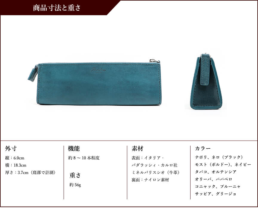 【サイズ】W6.5×H17.9×D3.1 (cm)【重さ】約16g【仕様】ペンが最大で12、3本は収納可能なペンケースです。シンプルで持ち運びには邪魔にならないサイズ感です。