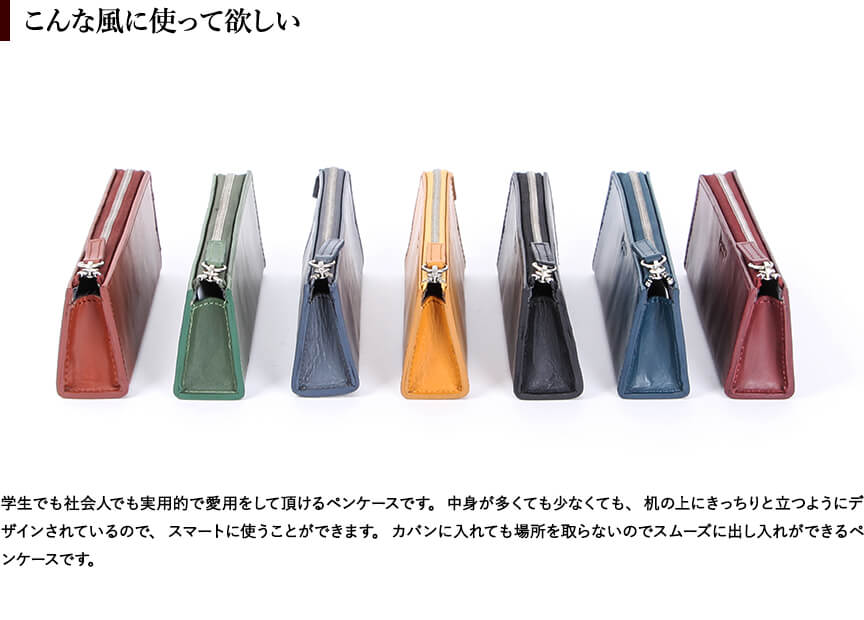 【サイズ】W6.5×H17.9×D3.1 (cm)【重さ】約16g【素材】タンニン鞣しの本革【生産国】バングラディッシュ【仕様】ペンが最大で12、3本は収納可能なペンケースです。シンプルで持ち運びには邪魔にならないサイズ感です。