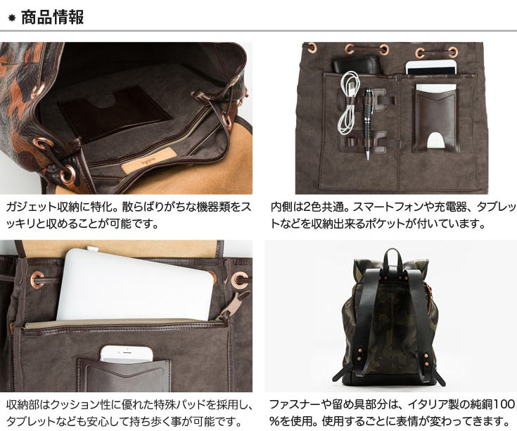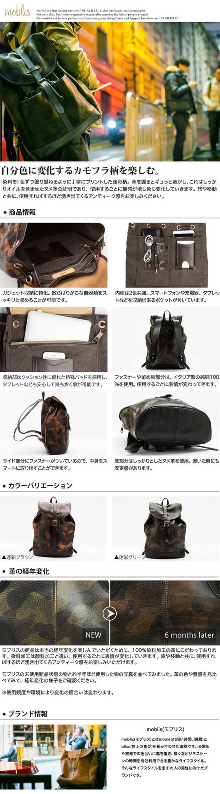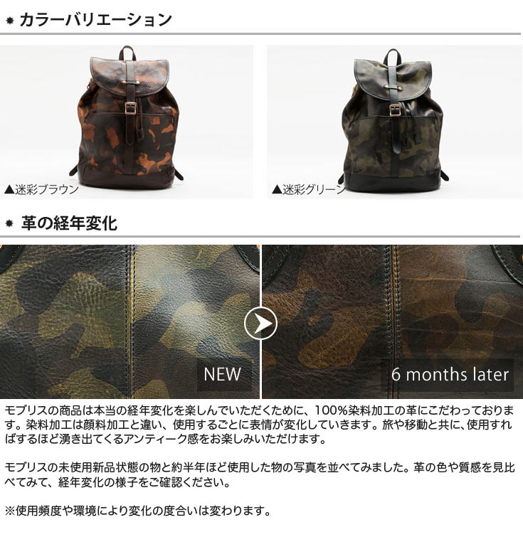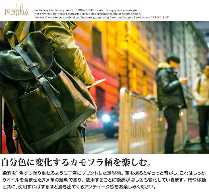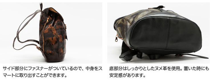 伝統的な製法で鞣された革に迷彩の染料をプリントしております。