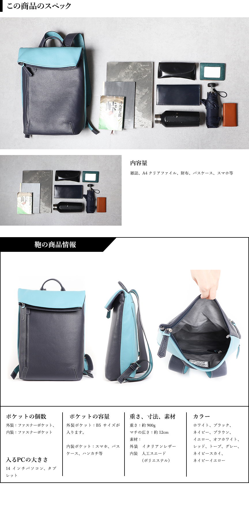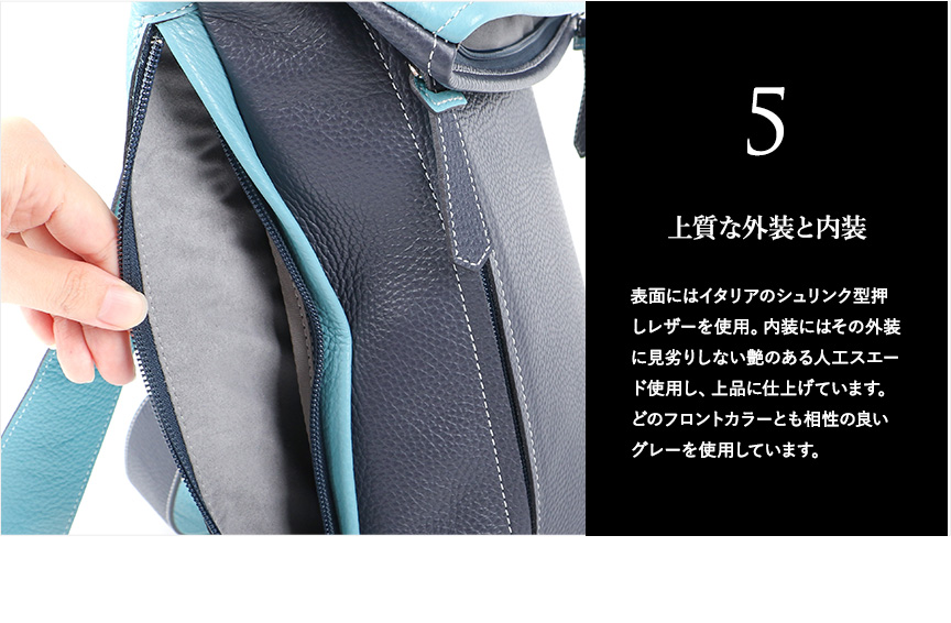 イタリアンレザー、付属品:イタリアンレザー、内装生地:人工スエード(ポリエステル)