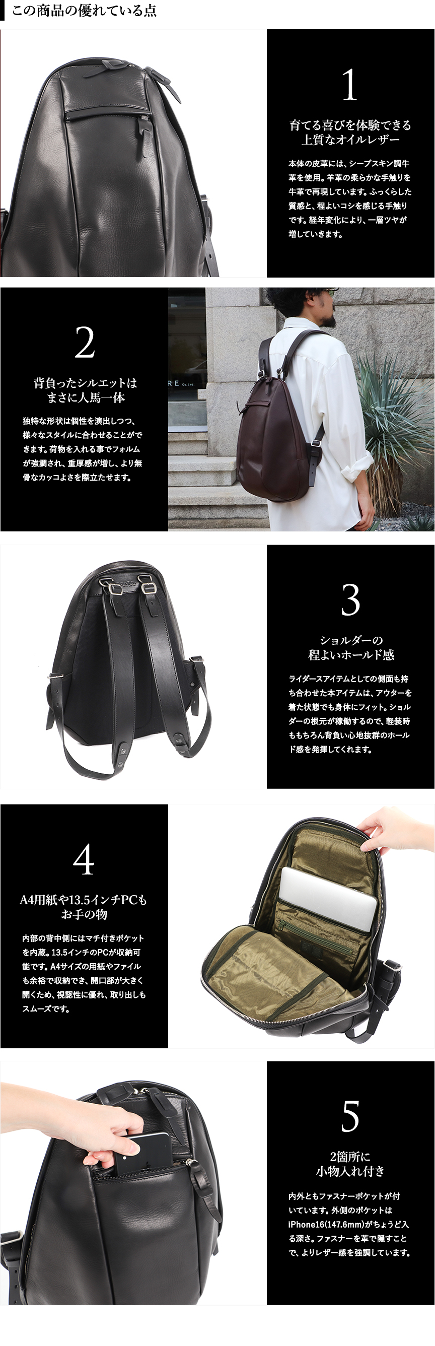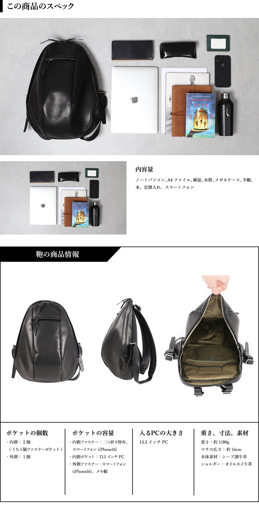 主材:シープ調牛革、付属皮革:オイルヌメ牛革