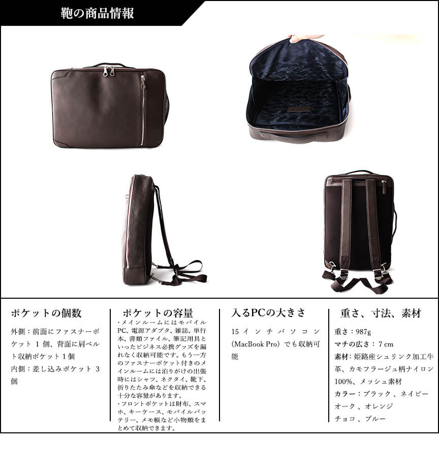 姫路産シュリンク加工牛革、カモフラージュ柄ナイロン100%、メッシュ