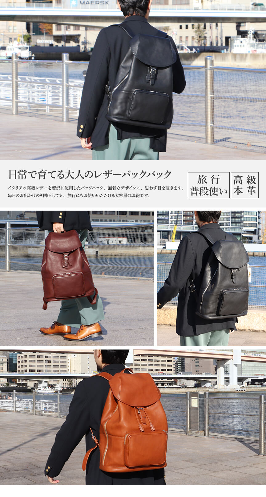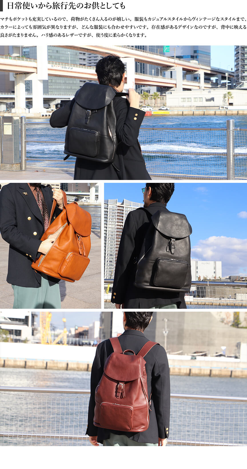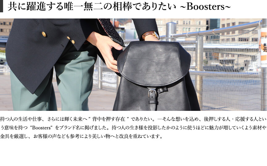 ブースターズ ミネルバボックス フラップ付きレザーバッグパック Boosters