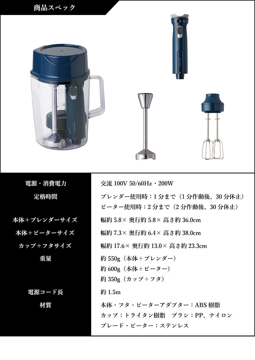 定格時間:ブレンダー使用時1分/ビーター使用時2分