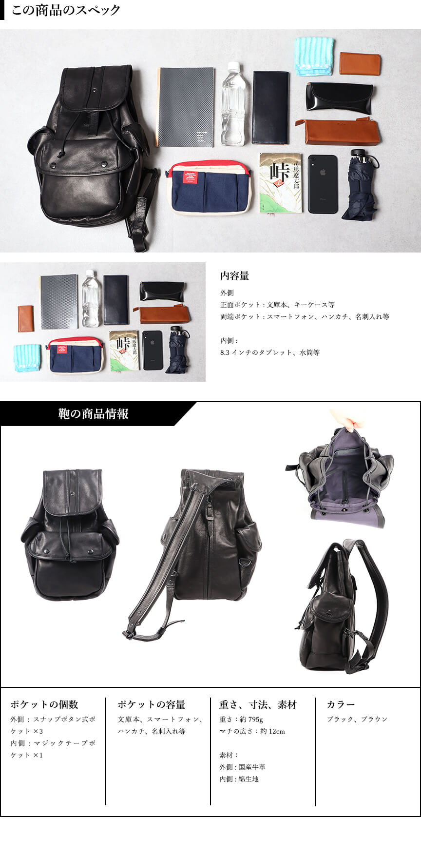 皮革:シュリンクソフトオイル牛革、内装:ブラック:パープル生地 ブラウン:オレンジ生地