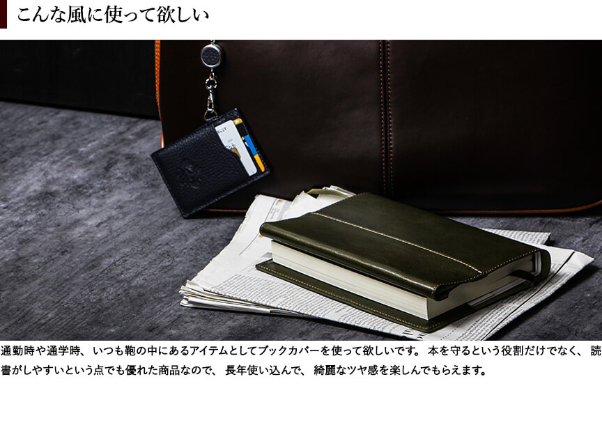 自分用に購入しました。国内で生産された革製品であることに惹かれて購入しました。ハードカバーの本にぴったりのサイズで使い勝手が良さそうです。これから使い込んでいくうちに味が出てきそうで楽しみです。