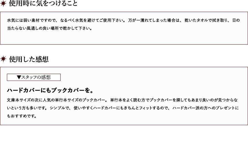前回は文庫サイズ、今回は単行本サイズを、自分用に買わせていただきました。使い込んで、経年変化を楽しみたいと思います。