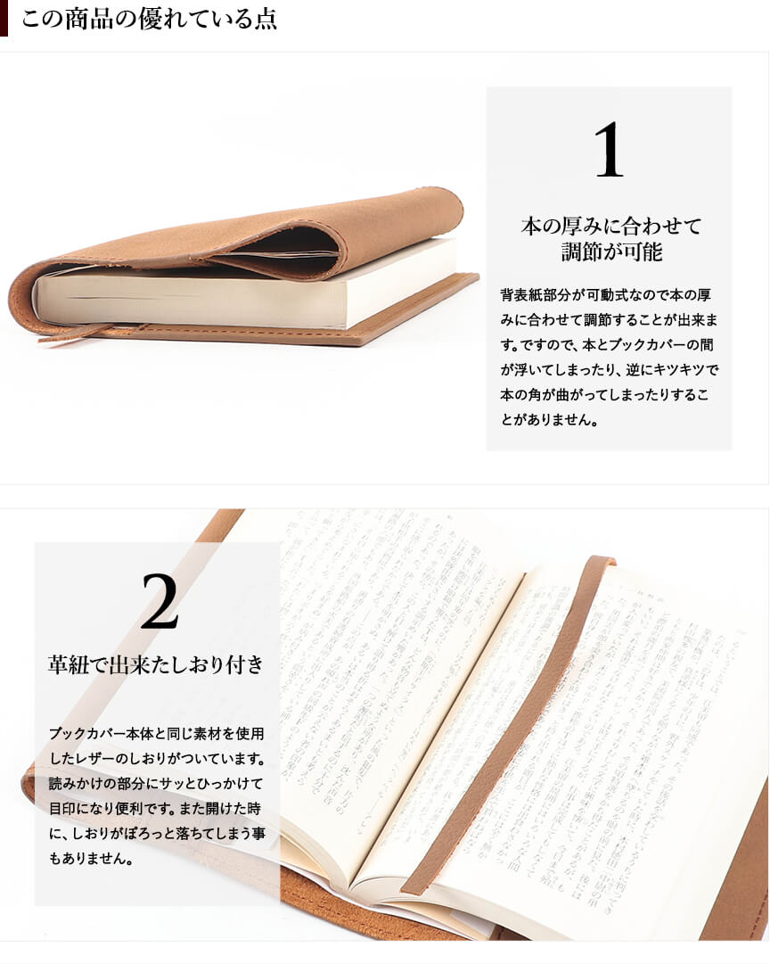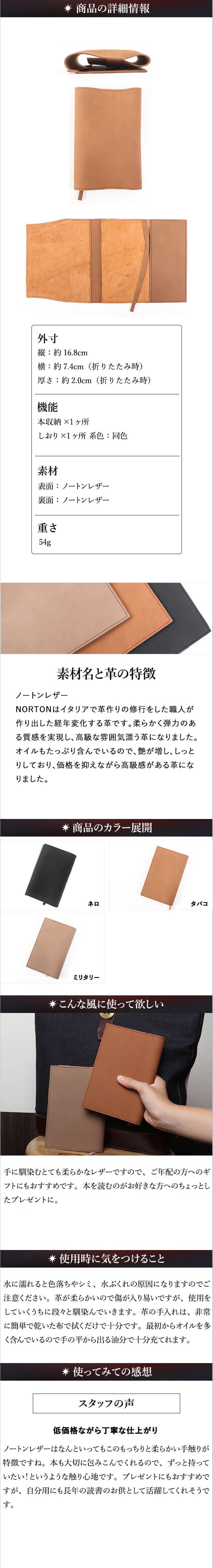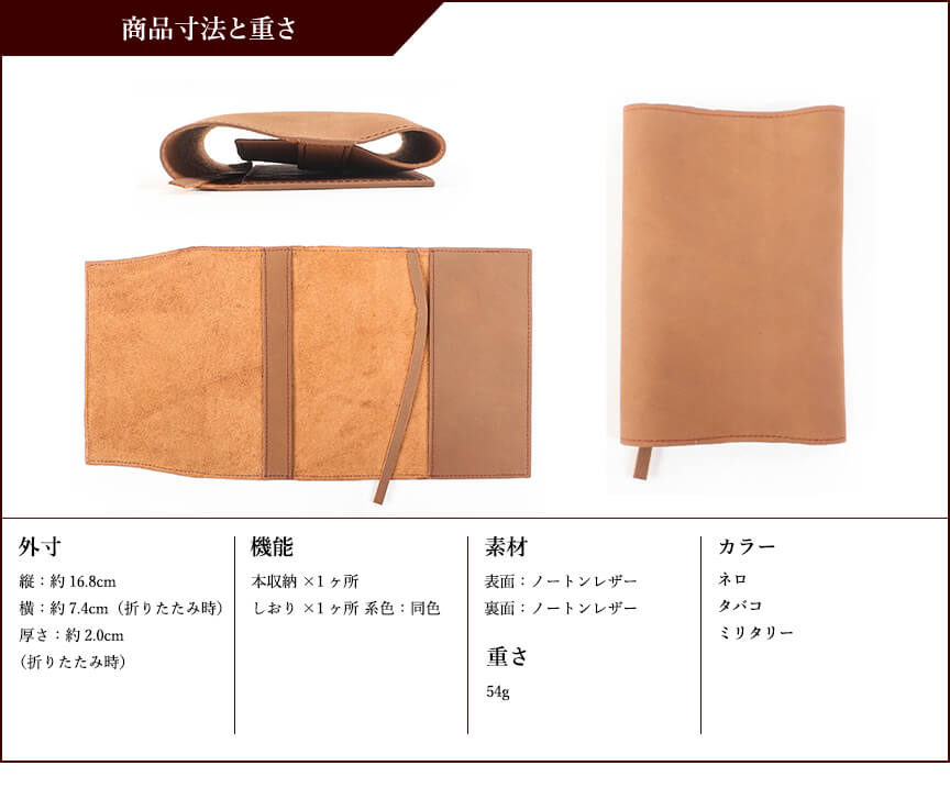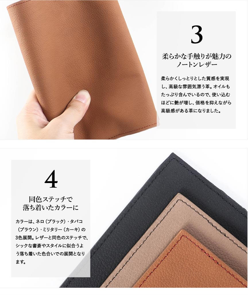 本収納エリア×1ヶ所 しおり×1ヶ所 コバ:へり返し 系色:同色