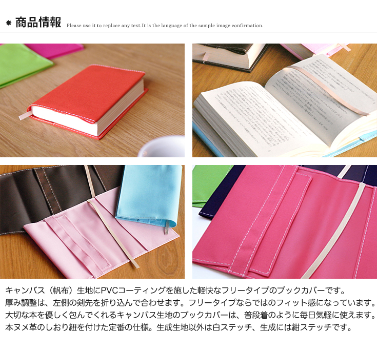 表地:帆布(綿100%) / 裏地:PVCコーティング / しおり:本ヌメ革