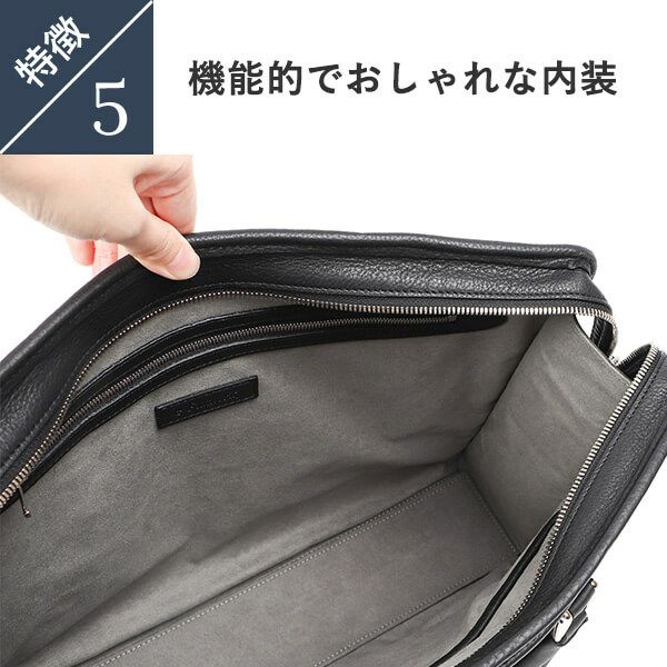 デザインはシンプルですが、妥協のない作り込みと品質の高さに圧倒されています。外側の革の良さも勿論ですが、内張のビニールの素材に惚れ惚れし、カバンからオーラを発しているような感じも受けます。大切に使いたいと思います。