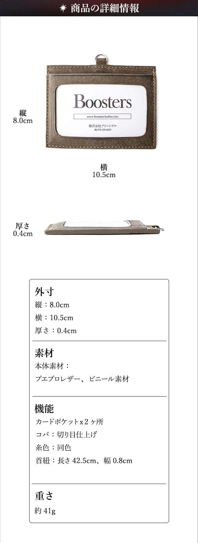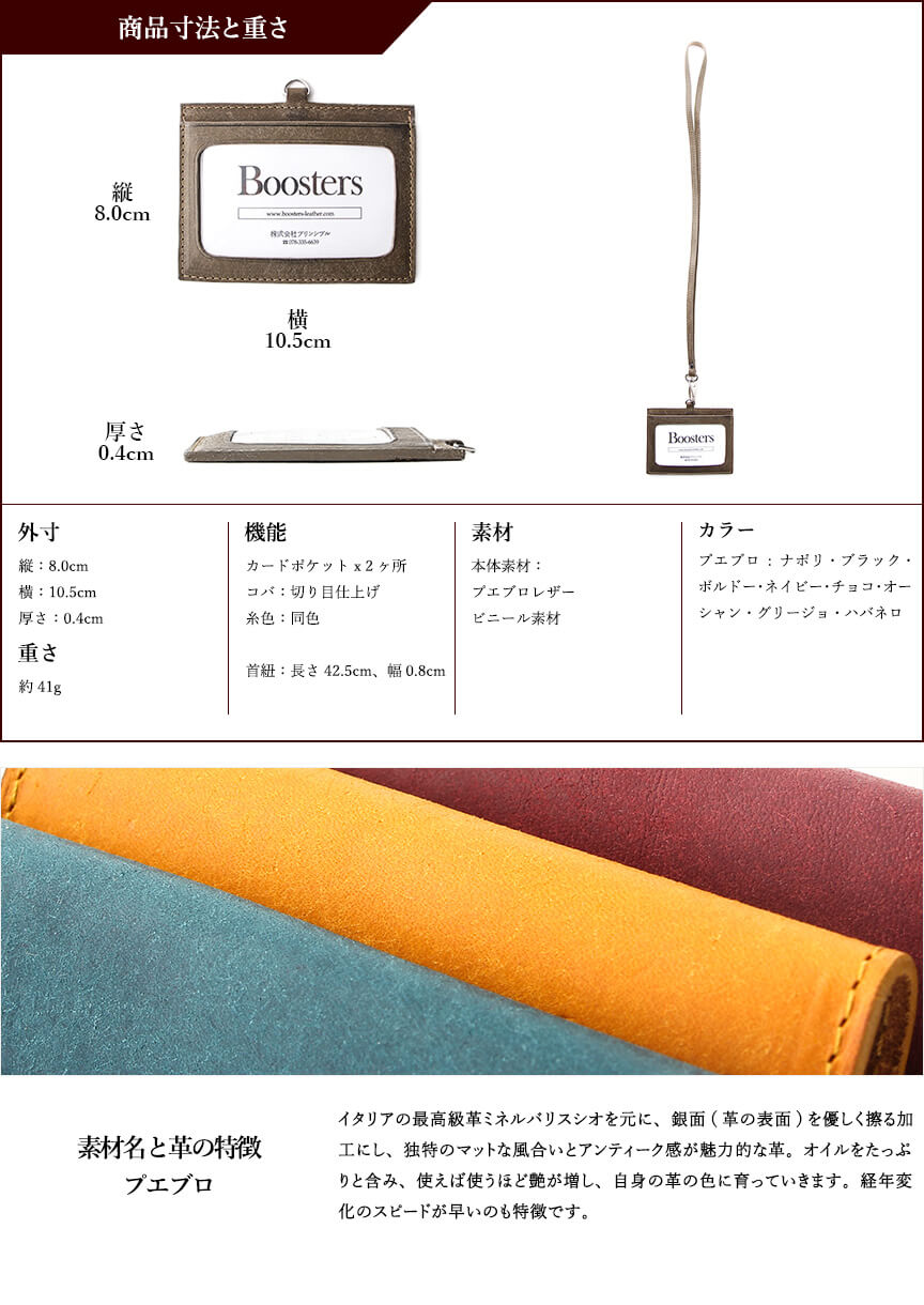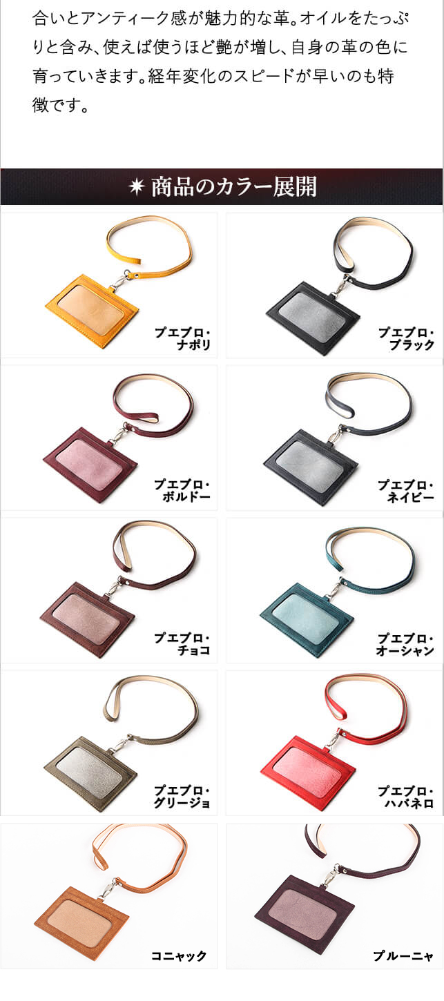 【サイズ】 外寸:縦8.0cm×横10.5cm×厚さ0.4cm 【重さ】 約41g 【素材】 革:プエブロ 【生産国】 バングラディッシュ 【仕様】 カードポケット×2ヶ所 コバ:切り目仕上げ 系色:同色 首紐:長さ42.5cm 幅:0.8cm