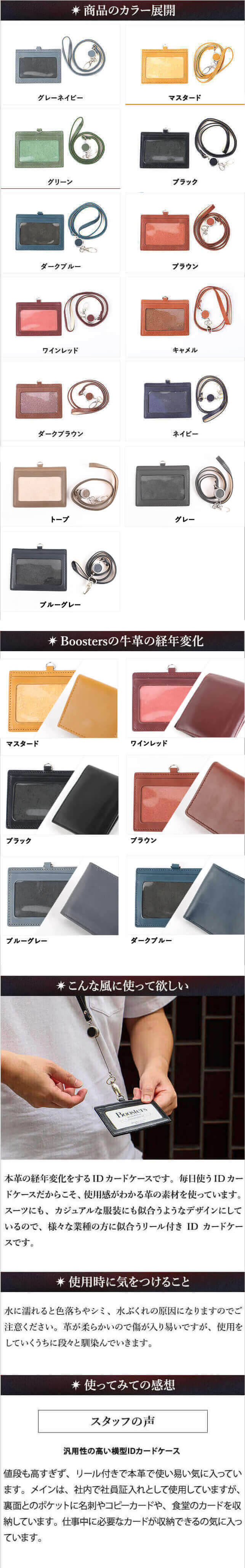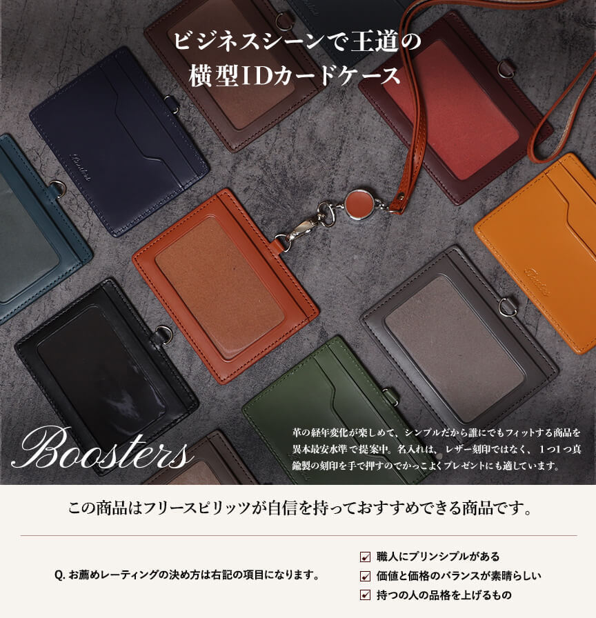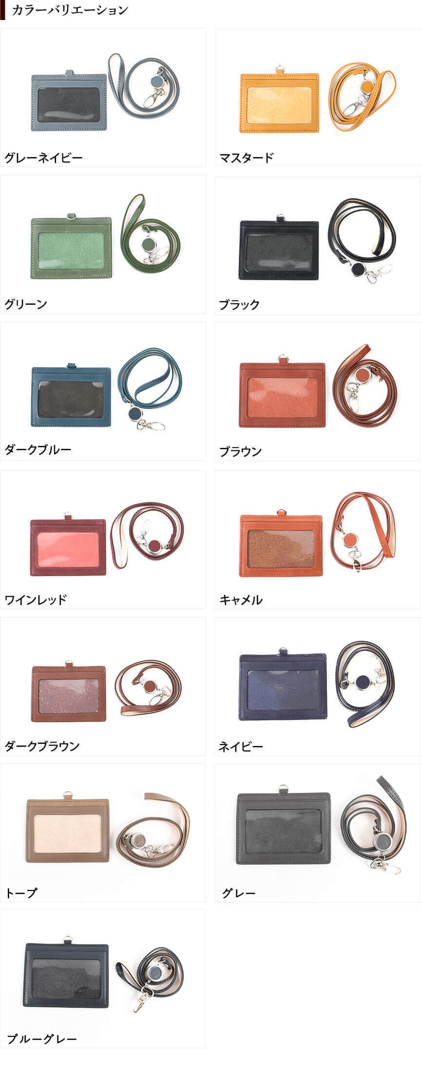 【サイズ】本体:約 縦7.5 x 横10.5 x 厚み0.3 mm ※突起部分含まず、リール部分41c、重量:約51g【素材】タンニン鞣しの本革【仕様】カードポケット3箇所、革ストラップ:41cm、リール:41cm
