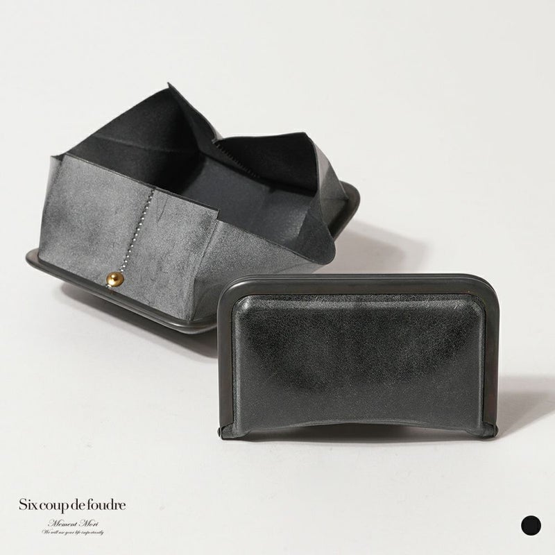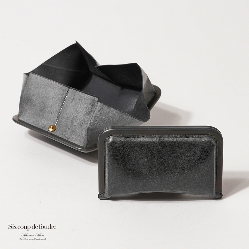 口金を開くと箱型になり、中身を一目で確認できます。小銭・カード・折った紙幣をまとめて収納でき、旅行先では指輪や鍵の一時置きとしても便利な、用途の広いミニウォレットです。日常使いから旅先まで幅広く活躍します。