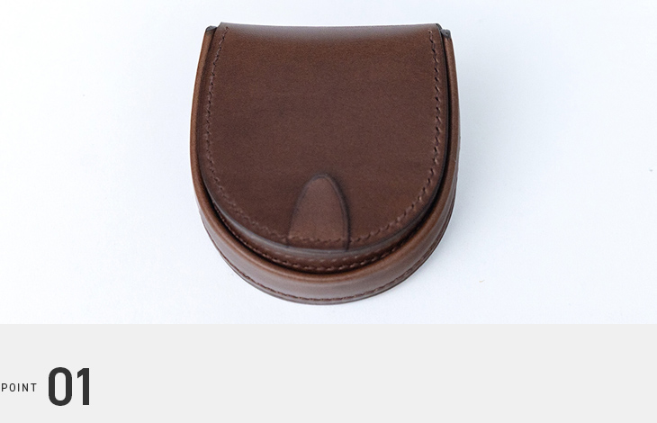 紳士の嗜みとして長く愛されてきた、伝統の馬蹄型コインケース。馬の蹄を思わせるフォルムが名前の由来です。直角に革を縫い合わせるこの形はミシンでは不可能。すべて手縫いでしかつくれない、まさに職人技の結晶です。イタリア最高級レザー「ブッテーロ」を使用し、上品さと存在感を兼備した逸品に仕上がっています。