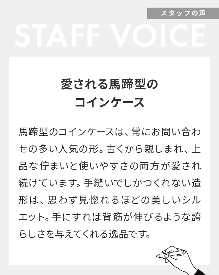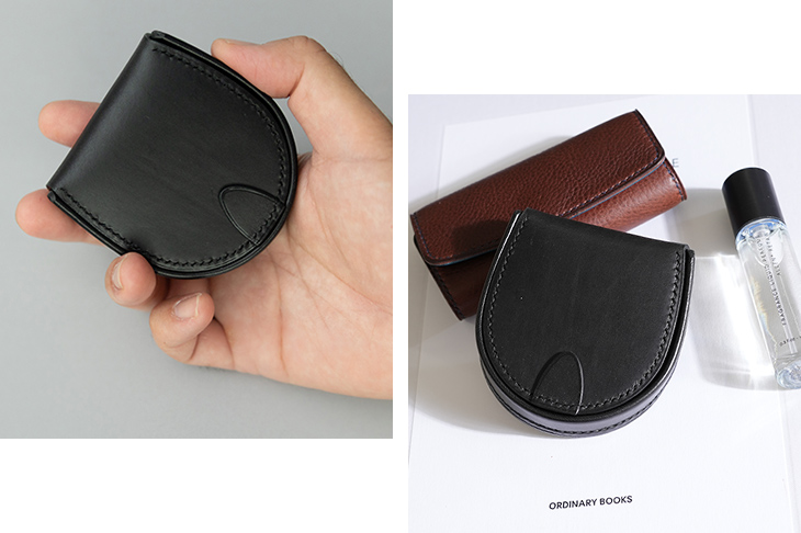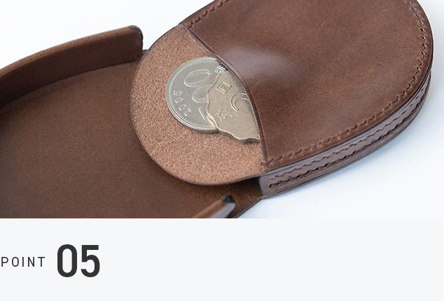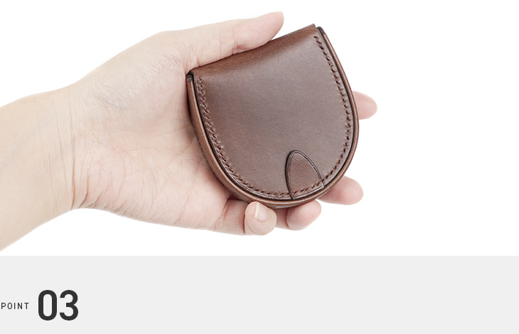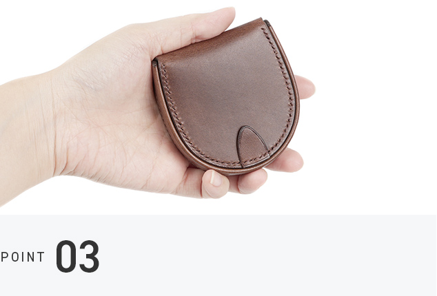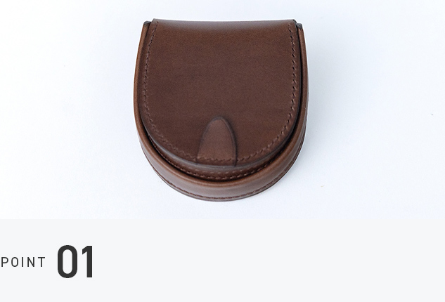 昔から紳士の嗜みとして愛されてきた、馬蹄型のコインケース。コインを20枚収納できる大容量ながら、革同士を90度に合わせて手縫いで縫い付ける、難易度の高い「駒合わせ」という技術でつくられています。コンパクトなので、胸ポケットに忍ばせてもかさばりません。