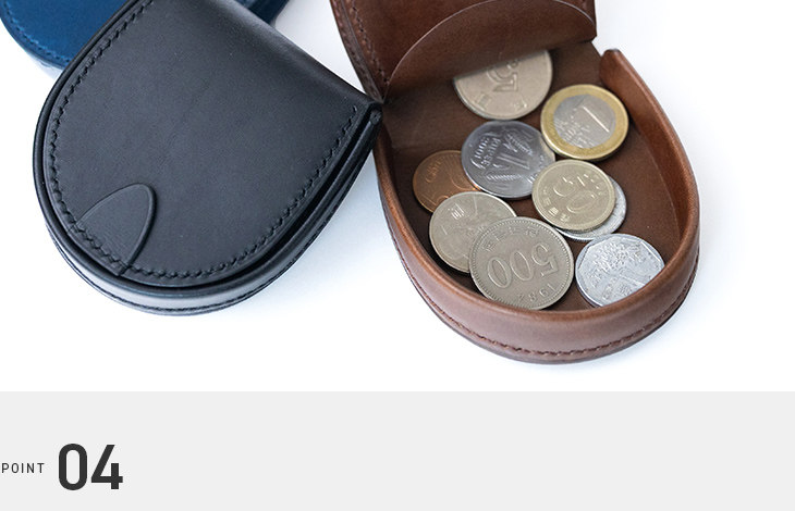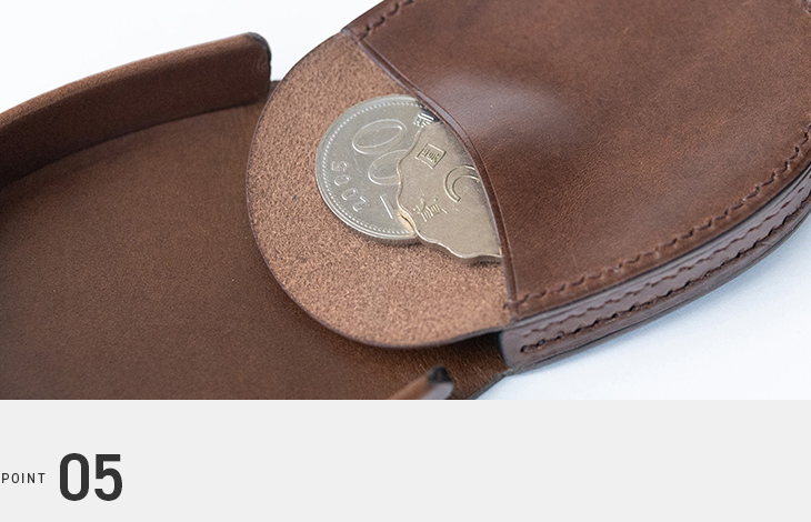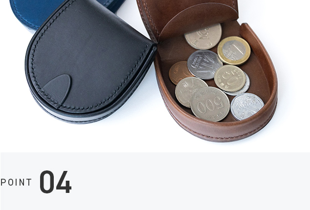コンパクトな外観ながら、100円玉を25枚収納できる大容量のコインケース。「たくさん入れると小銭が探しにくい」そんな悩みを、器状の部分にコインを滑らせる設計で解決。視認性も抜群です。