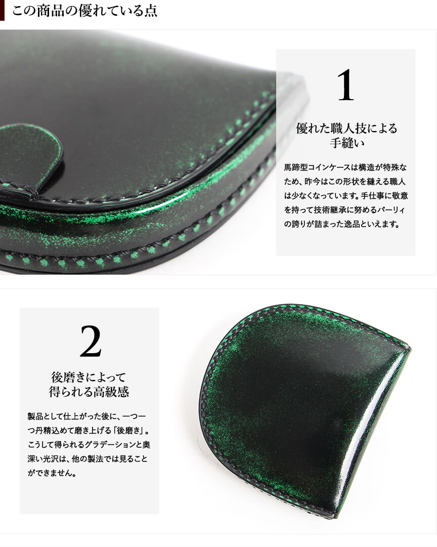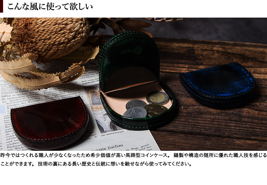 迅速に届けていただきありがとうございます。馬蹄形のコインケースは初めてで、思ったより小さいと思いましたが、25枚くらいはちゃんと入ってので安心しました。色は赤を選びましたが、思ったより赤過ぎず気に入っています。これから革の変化を楽しみにしています。