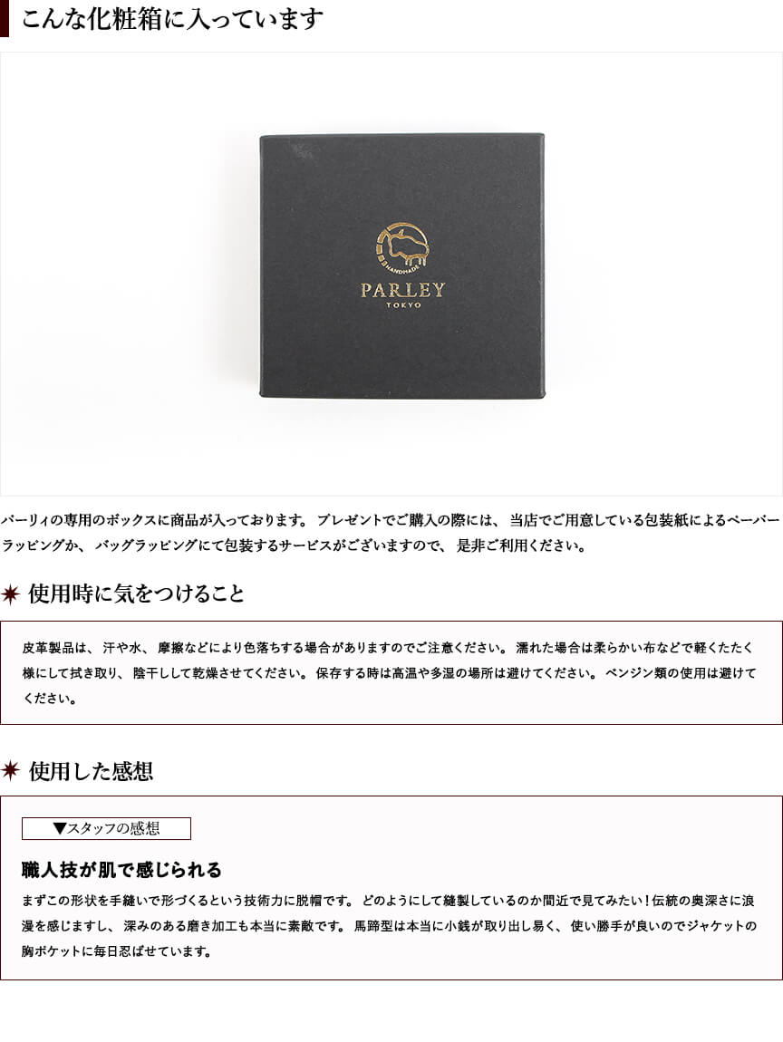 今回、友人の退職のタイミングでパーリィの馬蹄型小銭入れをプレゼントさせていただきました! とても喜んでもらえましたし、自分自身ずっと気になっていたアイテムだったので、自分用にもほしいと思っているので機会があれば購入するかもしれません笑笑
