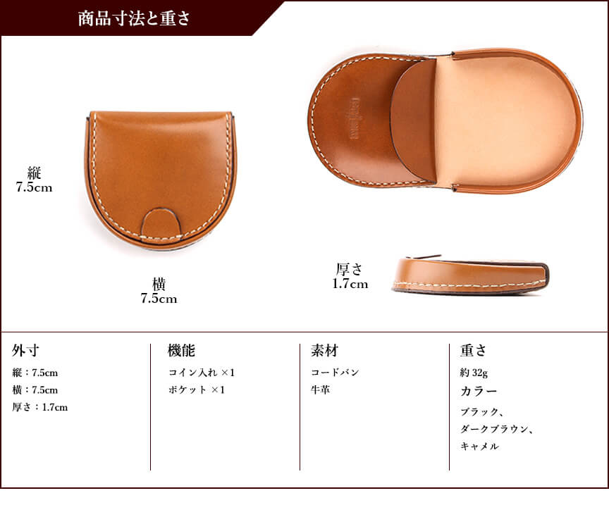 コイン入れ×1ヶ所、ポケット×1ヶ所、化粧箱入り