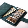 これまでは100均で買った楕円形のコインホルダーを使ってましたが、小銭が丸見えで嫌だったので、ブルーグリーン(プエブロ)を思い切って購入しました。