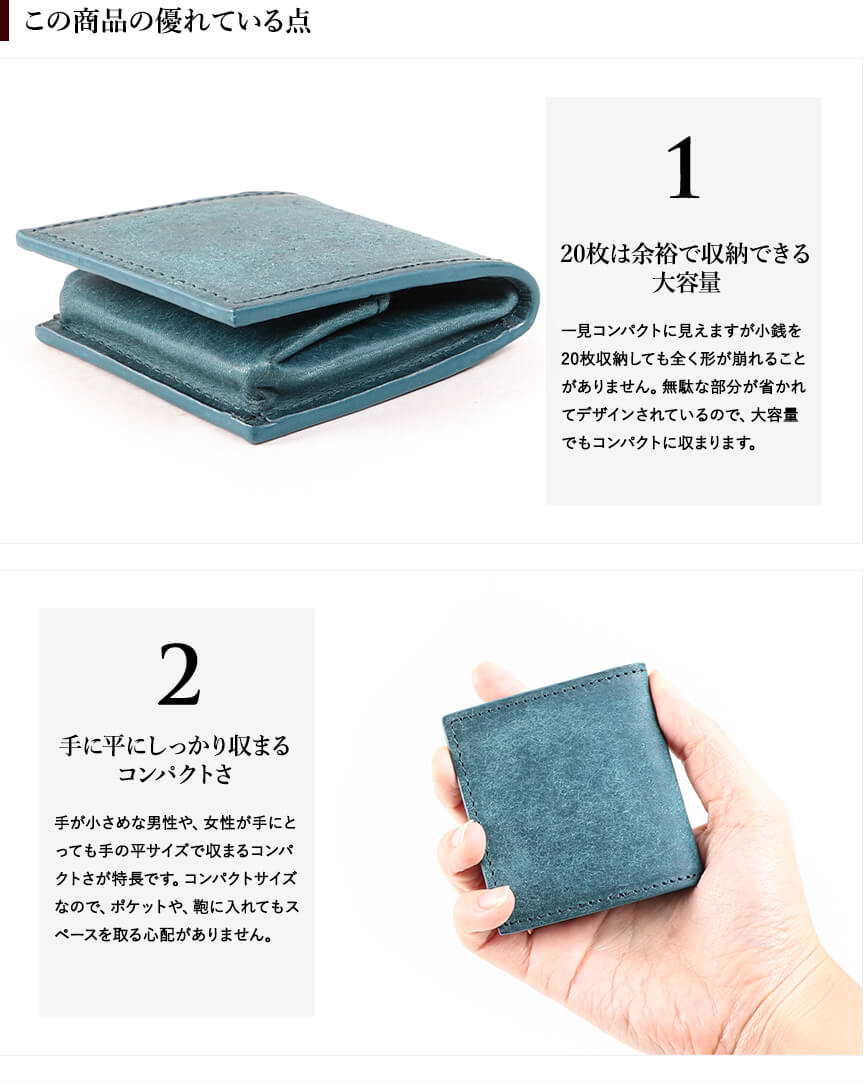 オルテンシアを購入しました、まずは色が好きでエイジングが楽しみです、思ってたよりは小さいと思いましたが色々なサイズのコイン25枚位は入るし取り出しやすくてかなり実用的で満足してます!