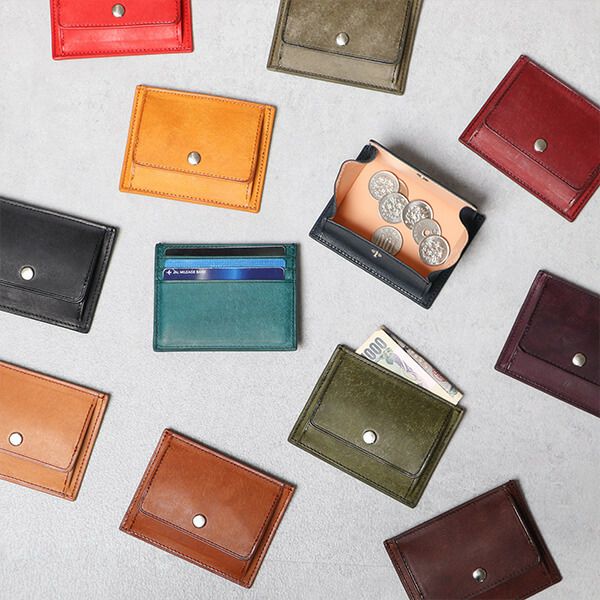 【サイズ】 W6.7×H7.4×D2.1 (cm) 【重さ】 約23g 【素材】 タンニン鞣しの本革 【生産国】 バングラディッシュ 【仕様】 小銭入れ1箇所別にフリーポケットが1箇所あるコンパクトなコインケースです。