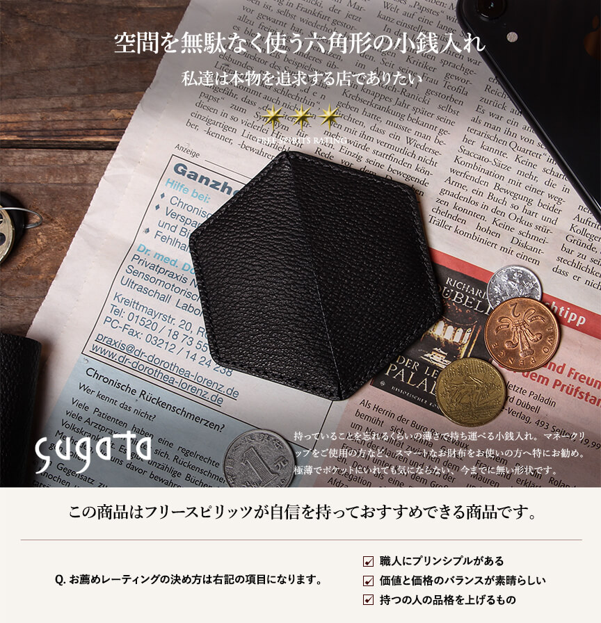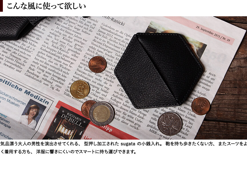 スガタ 平らな立体(六角) コインケース sugata