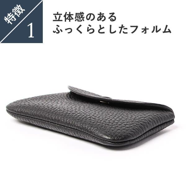ぷっくりした見た目とくるみボタンが気に入って購入しました。握った時の手にフィットする感じが気に入っています。コインケースという事ですが中に車の鍵やウォークマン、メガネ拭き等カバンの中で迷子になるものをまとめて入れています。パンパンに詰めても膨らみが気にならない形なのが良いです。