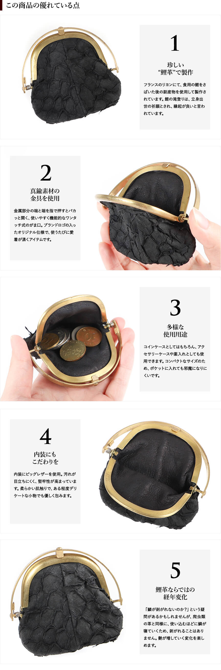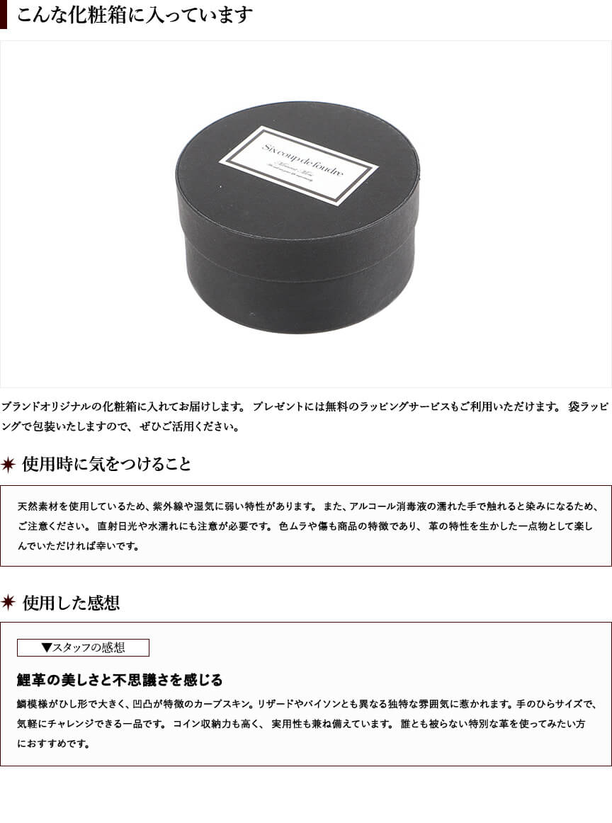 シスクー・ド・フードル ワンタッチコインケース SHC-74Ca 鯉革 ブラック Six coup de foudre