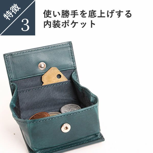 財布は誰もが持っているアイテムですが、コインケースは今まで持ったことがない人もいると思います。コインケースと財布で使いわけるのが面倒、お会計の際に両方ださないといけないと余計に手間になると思われがちかもしれません。しかし、財布だけだとカード類や小銭が多くなってくるとパンパンに膨らみ、せっかくいい財布を持っていても膨らみすぎた財布だと不恰好な見た目になります。そういった方に、コインケースを使用して頂くと小銭で財布がふくらむこともなくなり、また、ちょっとした買い物であれば、コインケースだけでお会計をすますことができるのでとてもスマートになります。