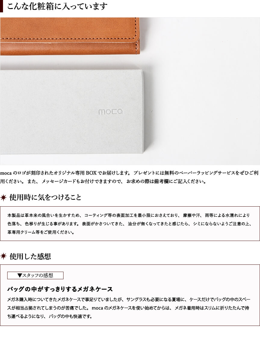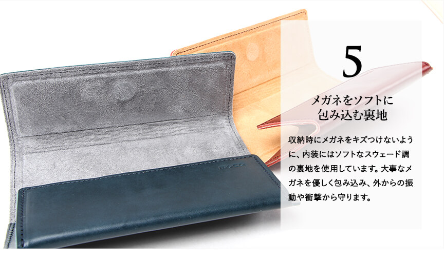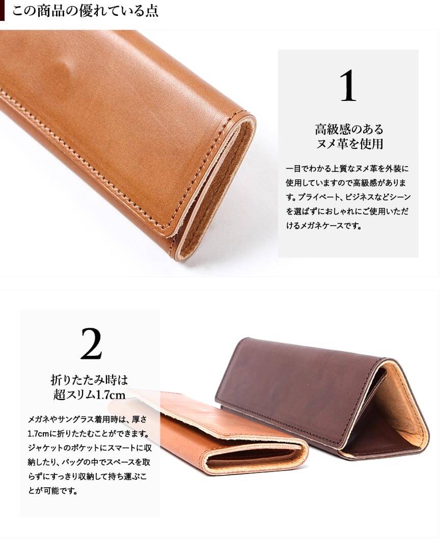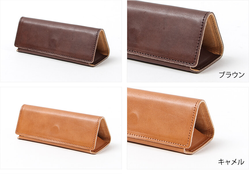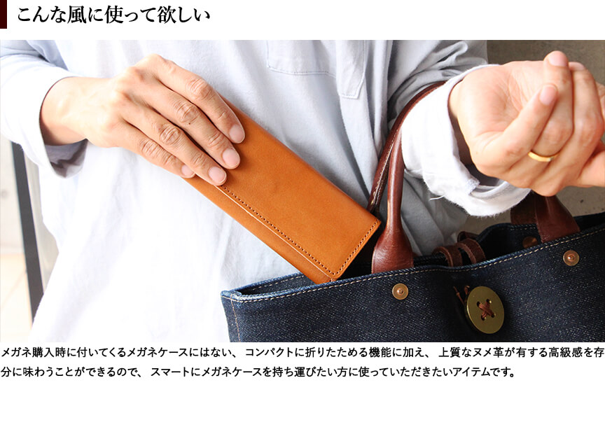 上質なヌメ革を使用した薄く折りたためるメガネケース