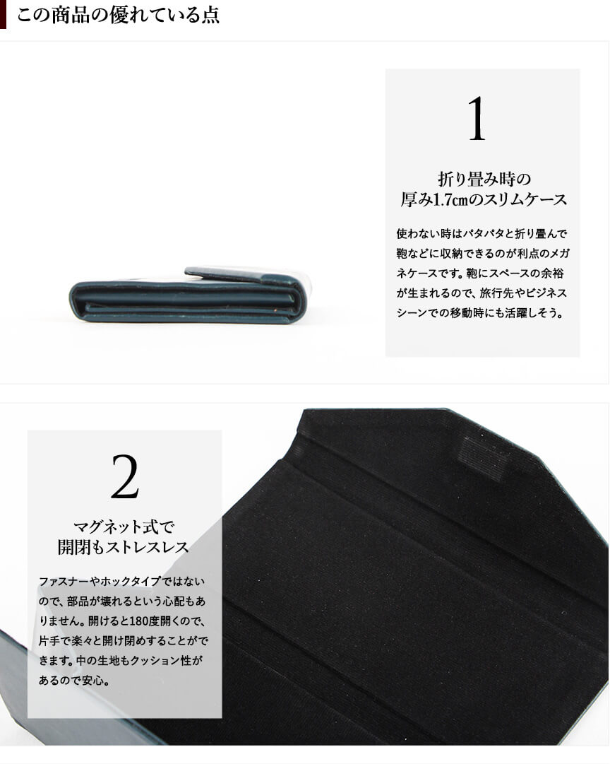 使用しない時は薄く折りたためるメガネケース