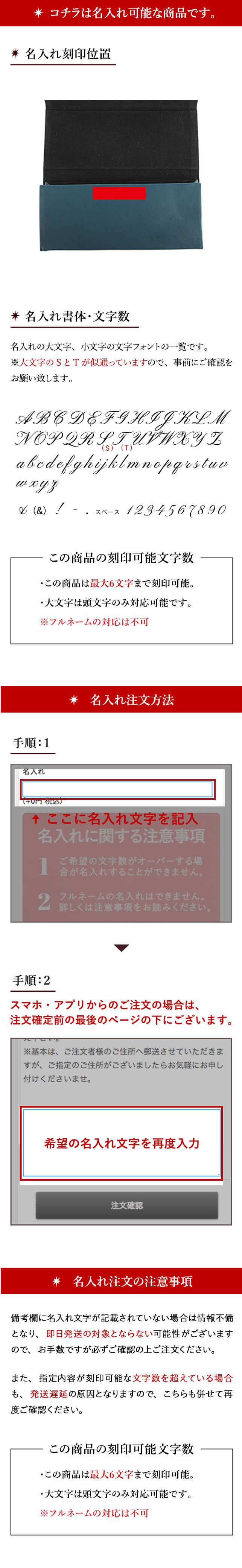 名入れ注意事項